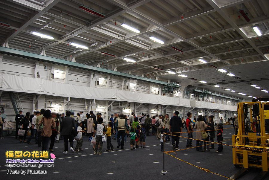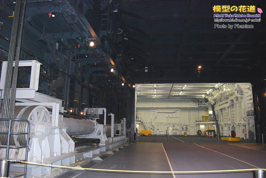 格納庫内は天井が高く、搭載機も置かれていなかったため広々とした印象です。