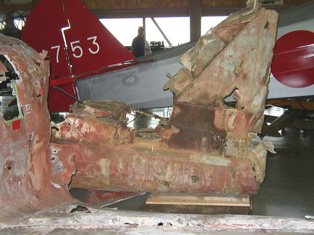 同じくヤップ島から回収された中島製92717号機。マリアナ沖海戦に参加した空母大鳳搭載機とのこと。