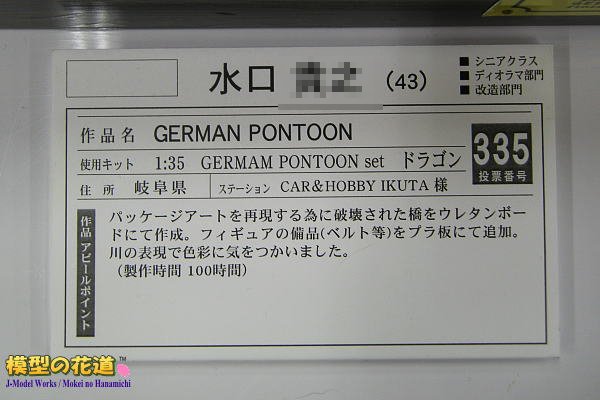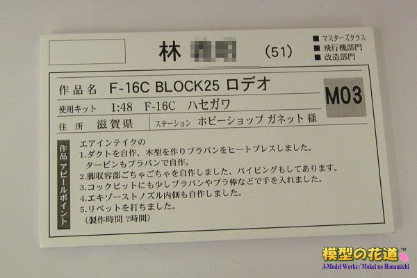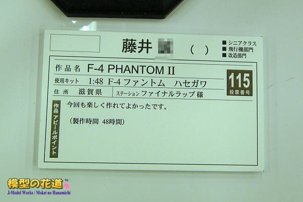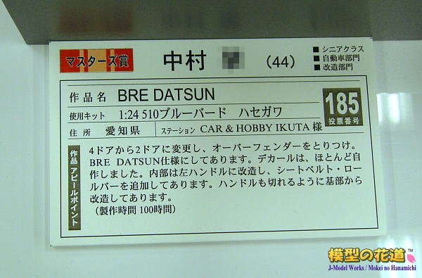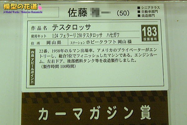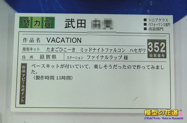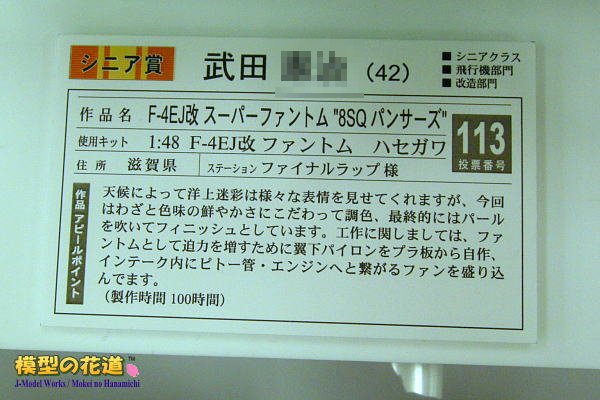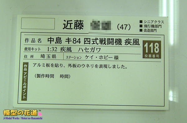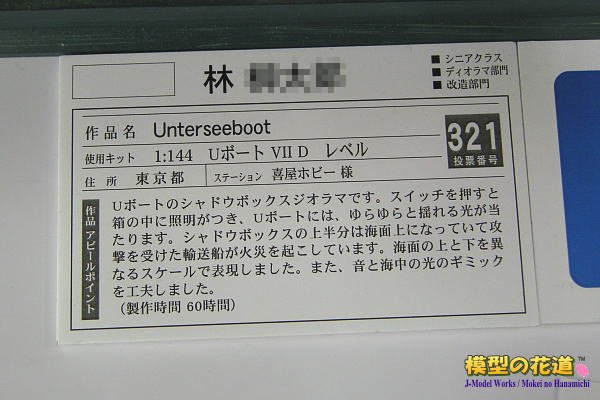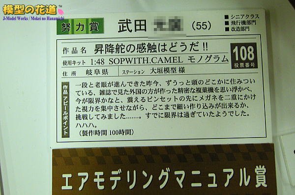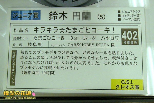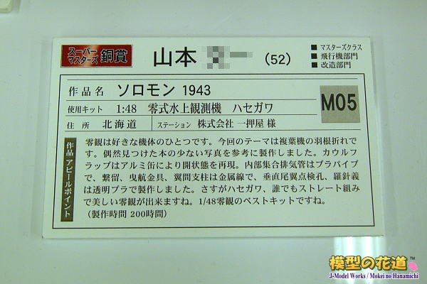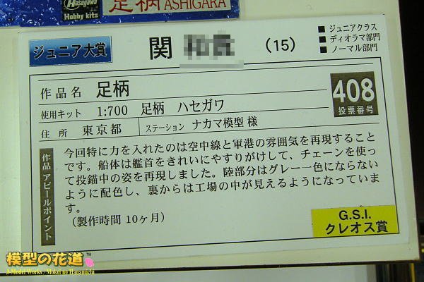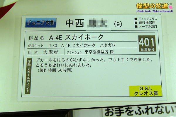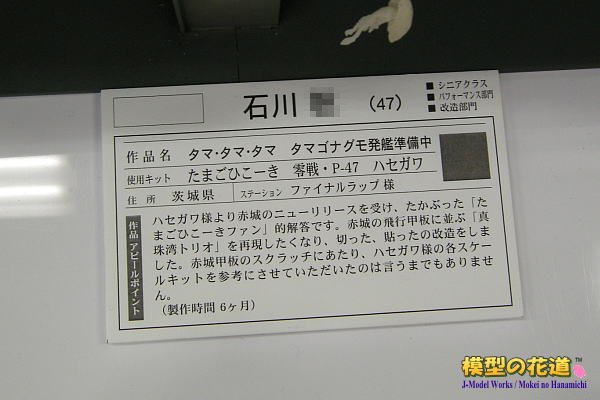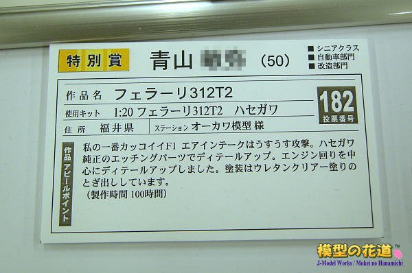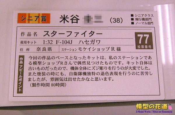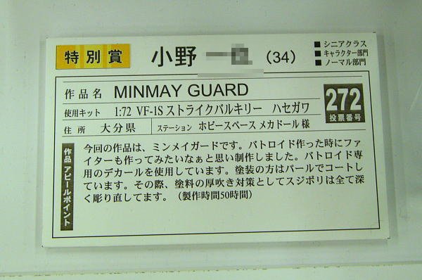 今回でJMC大阪を見に行くのが3回目となったのですが、出品作には常連が結構いるのに気付きまして、作風やキットのチョイスを一目見ただけでそれとわかったり、この人今年はこんな作品でエントリーしたんだという楽しみ方が出来るようになりました。 (2009/12/18)
