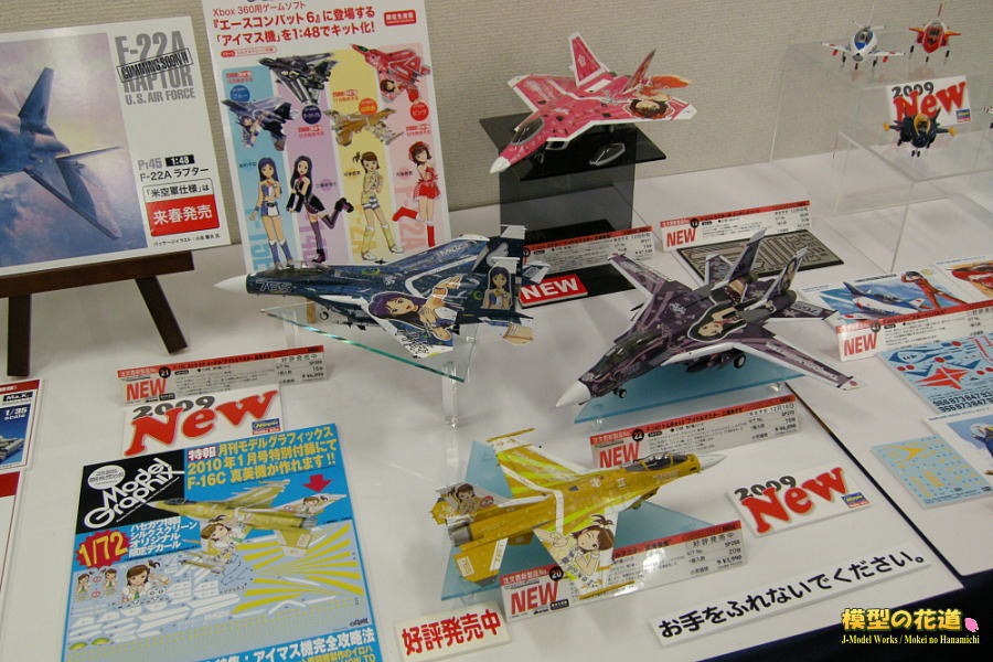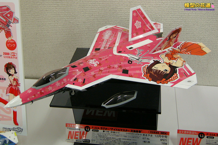 新製品コーナーは、とにかくアイマス機が目立っていて、多くの人がそこで足を止めていました。 ● 1/48 F-22A ラプター アイドルマスター 天海春香 【12月下旬発売・Amazon】