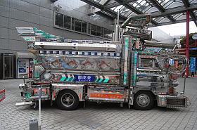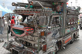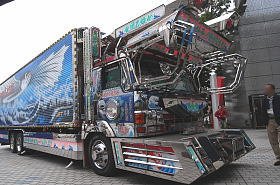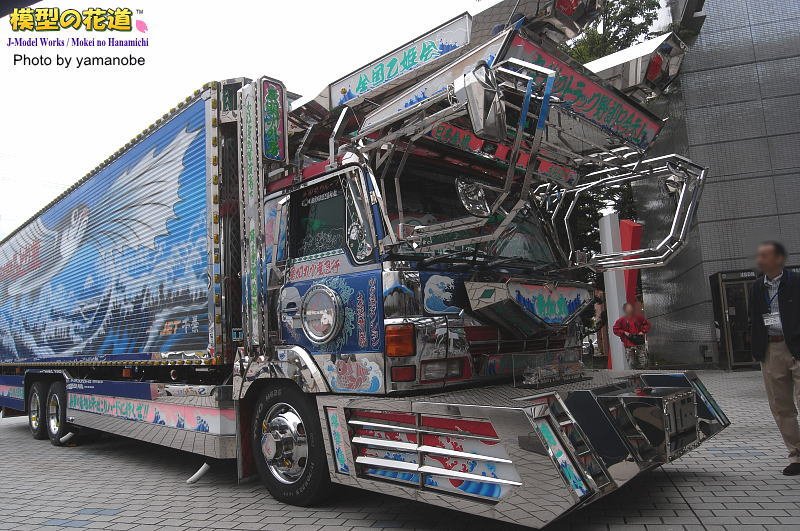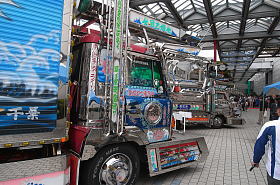 屋外の実車展示は、例年の自衛隊車輌に加えて今年はデコトラの姿が。 ● 二代目勇加丸