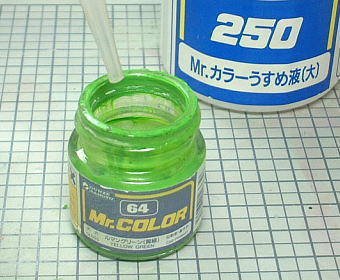 なお、現在はクレオスから「真・溶媒液」というMr.カラー専用の揮発した塗料の復活剤が発売されており、私も今はこれを愛用してます。