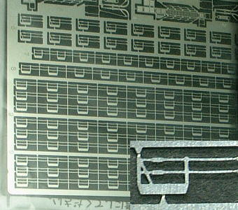 エッチングパーツは艦船模型をリアルに見せるのに有効なディテールアップパーツで、その中でもポピュラーなのが手すりです。手すりは人との大きさを比べやすい装備品なので、実物の巨大感と模型の精密感を演出するのに大変有効です。