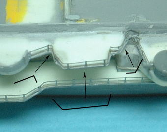 また横付け型の場合、どうしてもエッチングパーツと側面との間に段差や合わせ目が出来てしまいます。気になる人は溶きパテを合わせ目に盛って、サンドペーパーをかけてやればキレイに仕上がります。