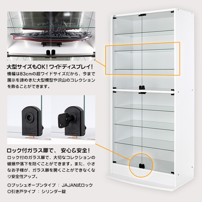 JAJAN フィギュアラック サード ワイド 幅 83cm 奥行 39cm LED(白)+本体(扉)ハイタイプ +上置きロータイプ+ミラー2枚 フルセット ブラック 【Amazon】
