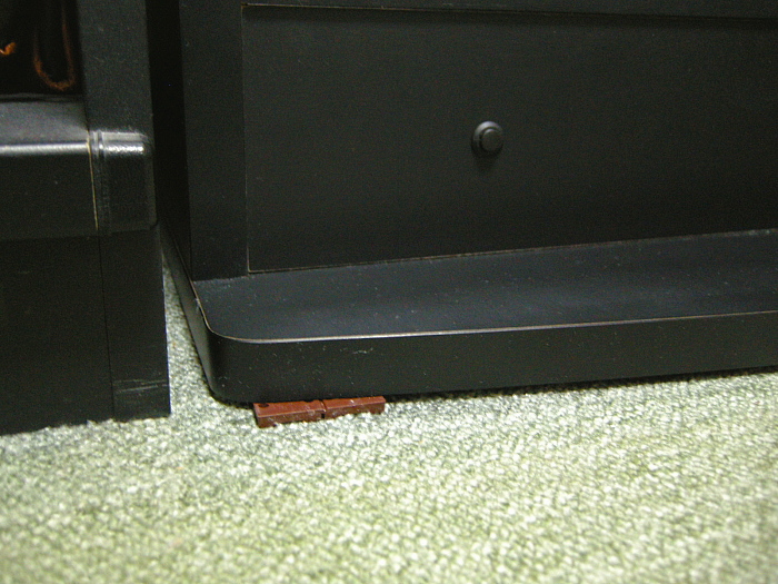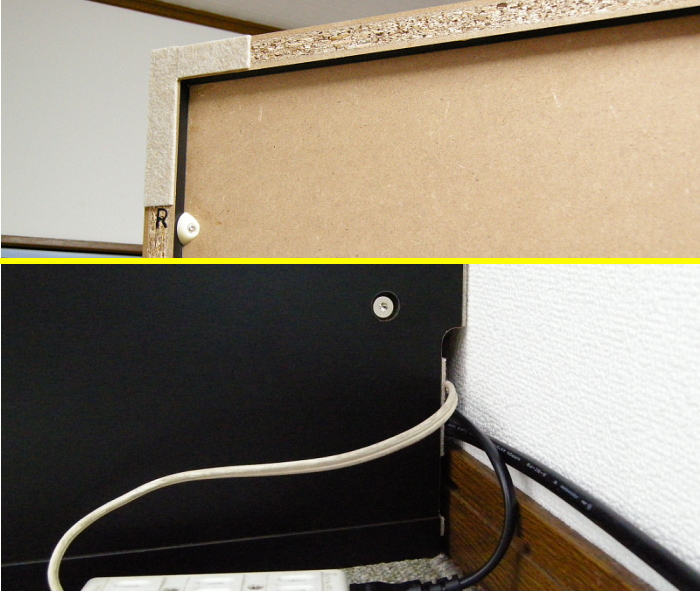 強力タイプの両面テープを隙間にびっしり貼り付けました。せめてこれぐらいしないとなあ・・・数年後にテープが劣化して倒れてきたではシャレならない。