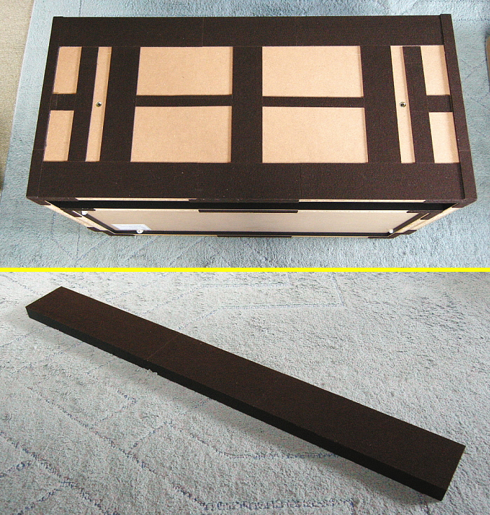 そしてこの上置きの底板、背板、天井固定板にもフェルトを貼り、積み重ねた時のフィギュアラックとの継ぎ目、壁、天井が傷付きにくいよう加工しました。