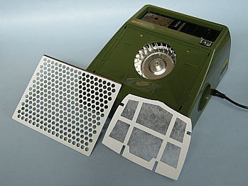 | 天板カバーを外すとシロッコファンの上に専用フィルターが被さっています。 |