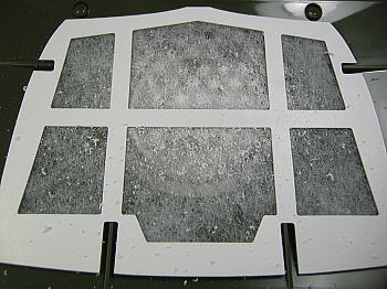 天板カバーを外すとこんな風にたくさんの切りクズと粉塵がフィルターに吸着してます。
