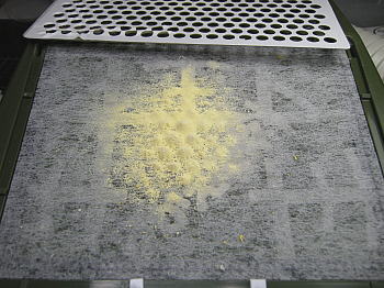 左画像はダストキャッチャーが吸い込みきれずに場外にどれくらいの切りクズが飛び出しているかの画像です。(クリックで拡大)