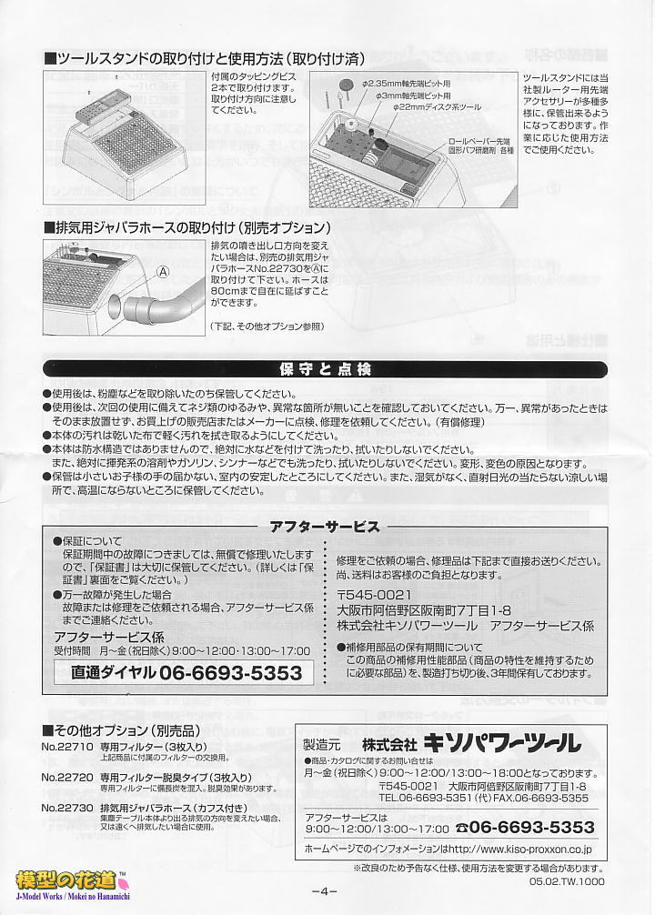 切削時に発生する粉塵にはフィルターを通り抜けてしまう細かい粒もあるので、これを室外に排気したり、排気を右側以外の方向へ向けたい場合はオプションのジャバラホースが必要になります。