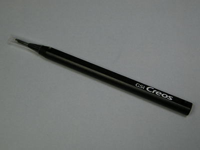 GSI Creosのロゴの印刷面は平らに処理されており、これはころがり防止のためかと思われます。ペン型の刃物はころがって机の上から落ちたときに刃先が破損したり、足に刺さったりする事故が起きる事もままありますので、ここにも安全面への配慮が伺えます。