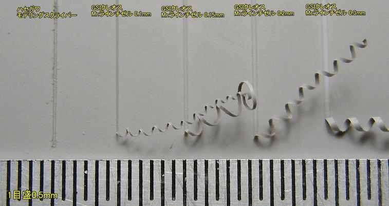 ラインチゼル0.1mm < モデリングスクライバー ≦ ラインチゼル0.15mm < ラインチゼル0.2mm
