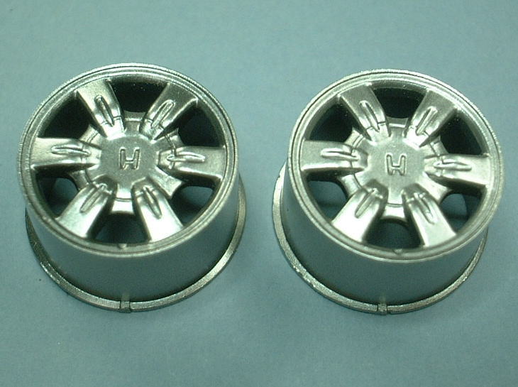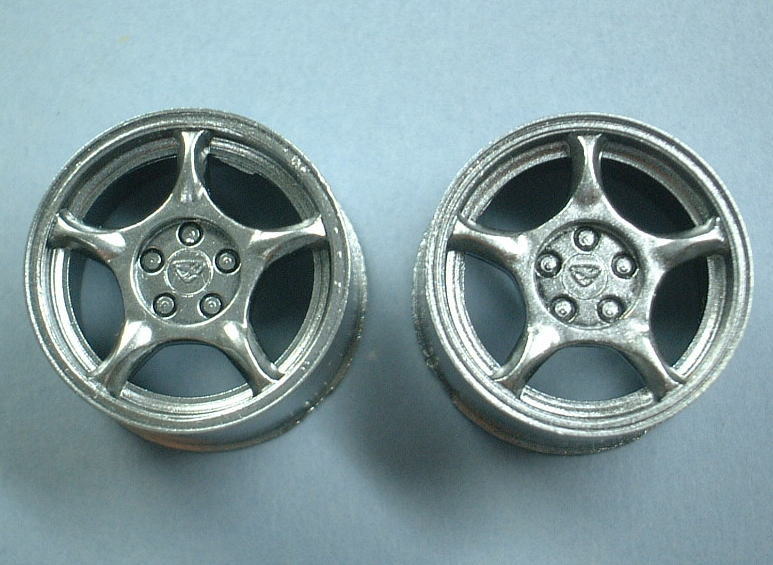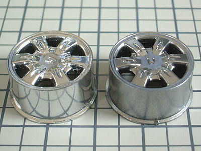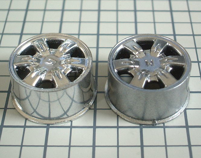 左のアルクラッドIIクロームのほうは、側面に下のカッティングマットの模様が映りこ込んでおり、上手く塗装するとこれくらいクロームメッキに近い雰囲気になります。